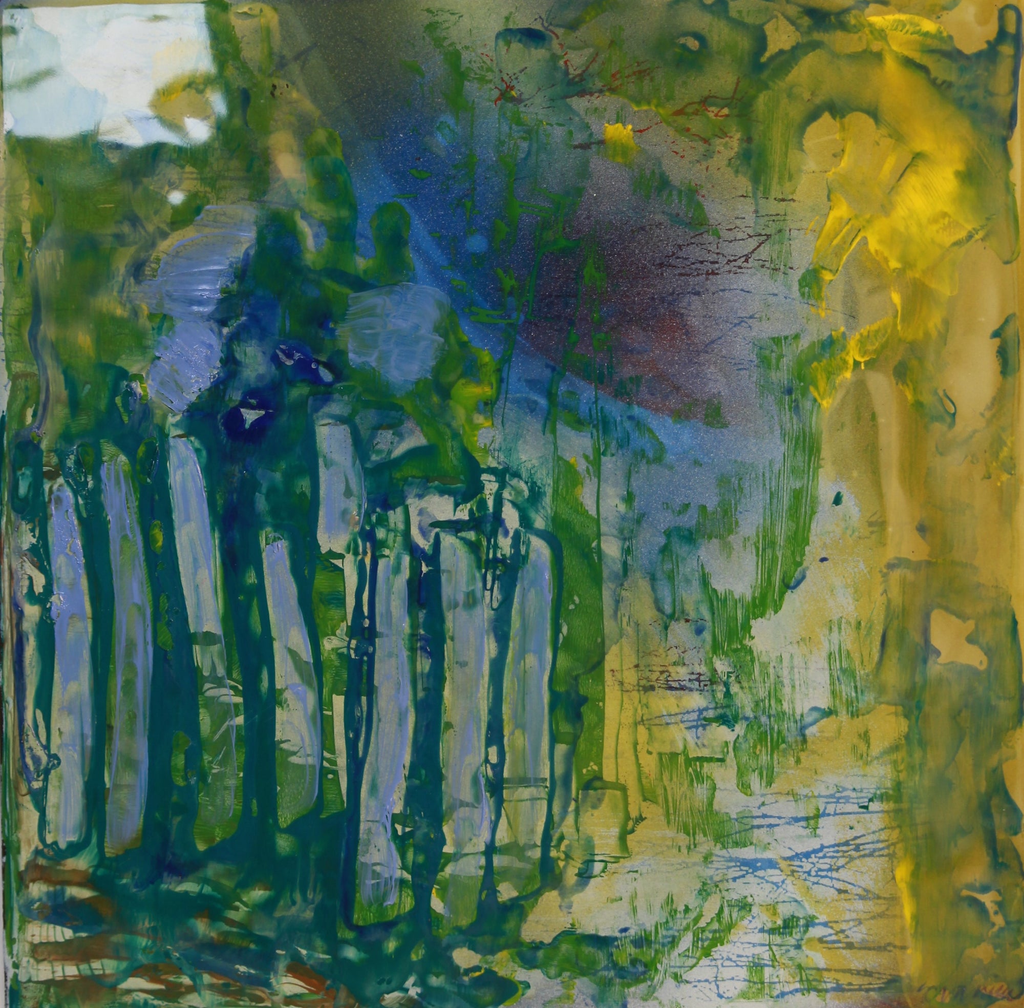 Handmålad och screentryckt emalj på plåt 29x29 cm