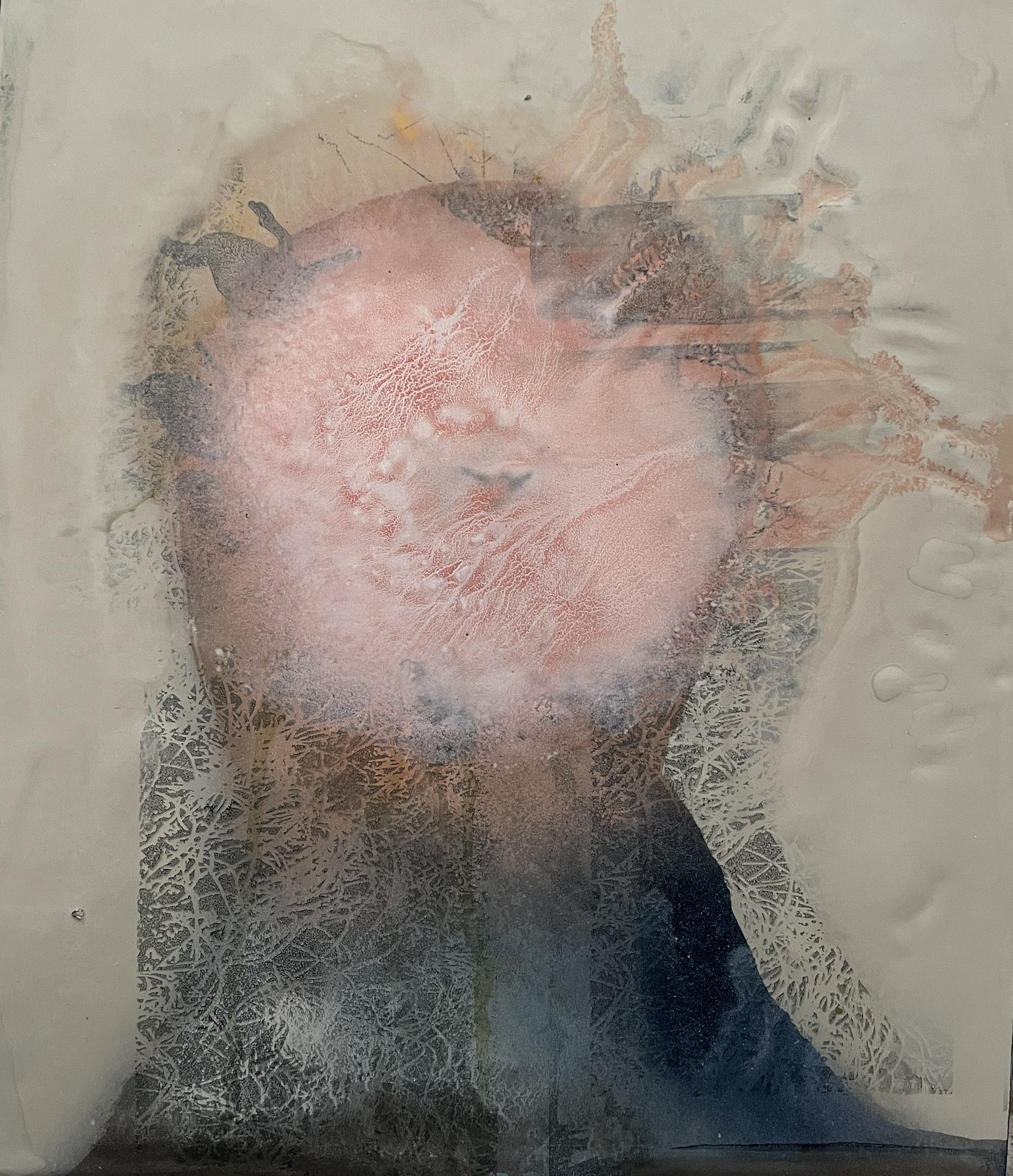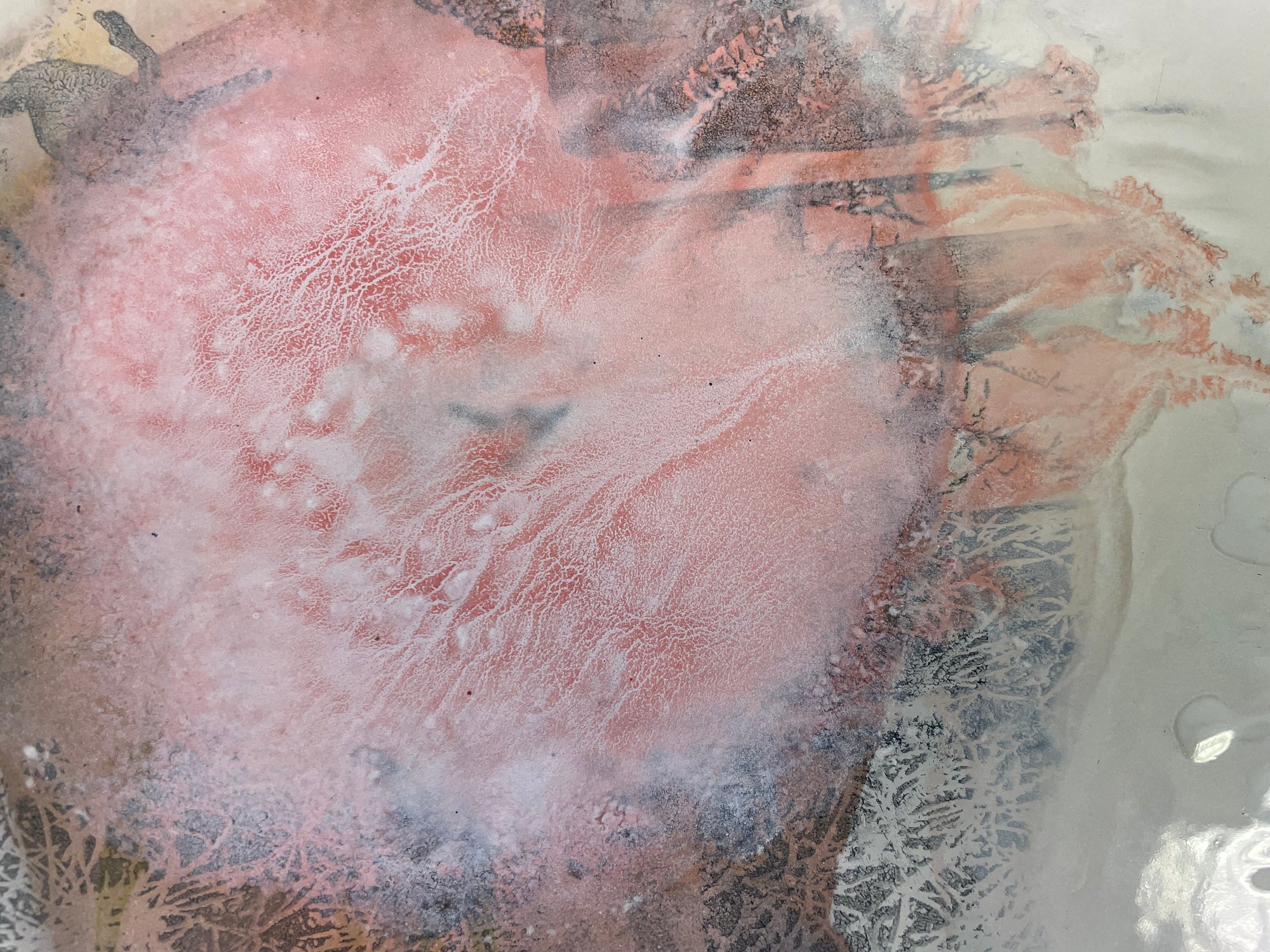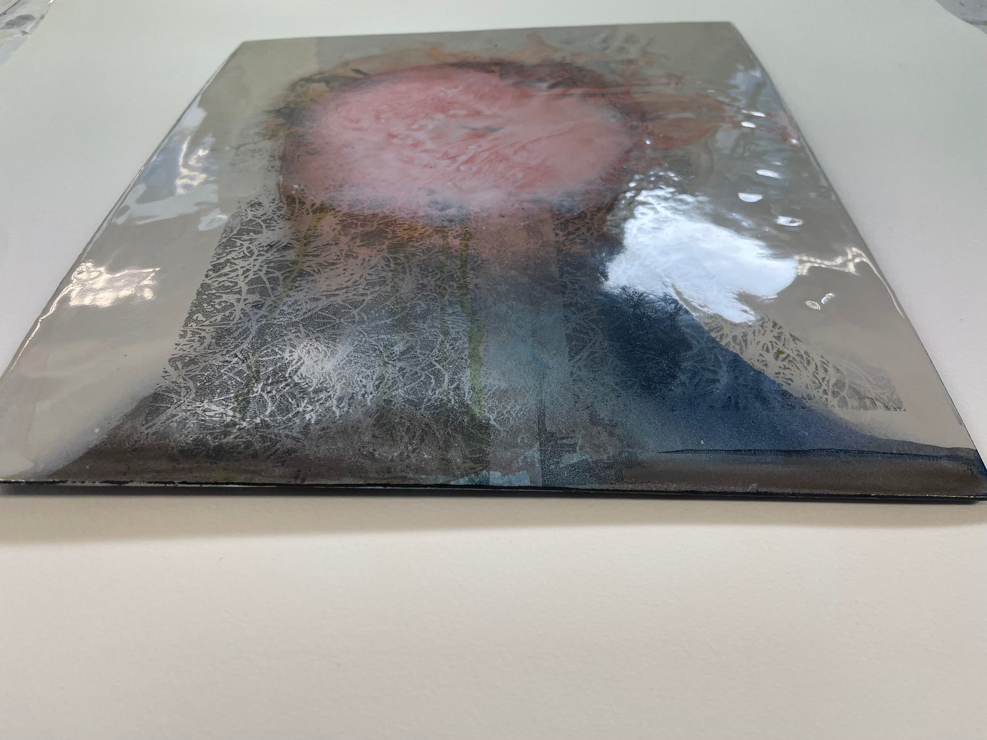 Handmålad och screentryckt i flera lager med emalj på plåt 29x33 cm